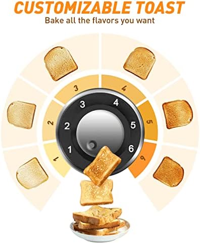 【Even Browning With 6 Shade Settings & Double Sides Baking】: The 6 selectable browning levels for 2-side baking allow optimal crispness for every type of bread and ensure even browning with precise control. The selectable toasting durations are between 55 to 175 seconds.