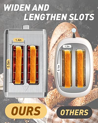 【Extra Wide Slots】: This toaster features extra-wide slots that easily fit thick bagels, artisanal bread, Texas-style toast, and more! Self-centering guides ensure even browning & a high-lift lever allows for easy access.