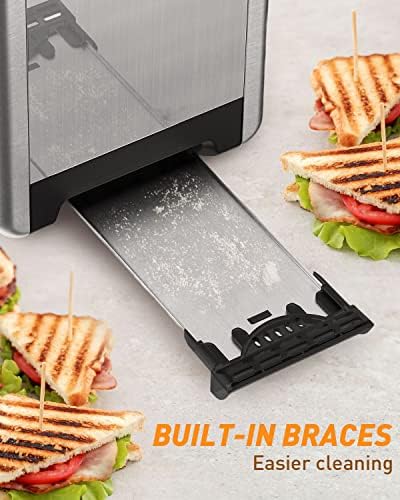 【Slide Out Crumb Tray】: Your toaster comes with a removable slide-out crumb tray, this is a quick and convenient way to remove crumbs. Always ensure that the toaster is unplugged and cooled down before removing the crumb tray. Easy to clean and dry the crumb tray then replace it with the toaster.