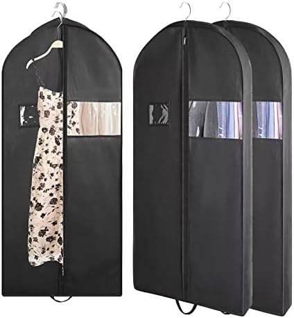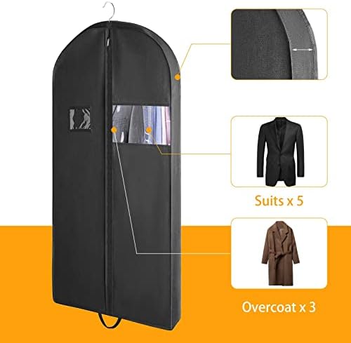 【Durable Zipper & Clear Window 】43inch Set of 3 Suit bags for closet storage have 4″ gussets to store about 4pcs suits or 8pcs shirts, 3 packs can total hold up to 12pcs jackets or 9pcs winter coat;60 Inch Set of 3 dress bags, each hanging garment bag has 4″ gussets to store about 5pcs silk dresses or 3pcs long trench, 3 packs can total hold up to 15pcs skirts or 9pcs winter coat; A see-through window so you can see what’s inside;with smooth zipper to let you access in or out quickly.