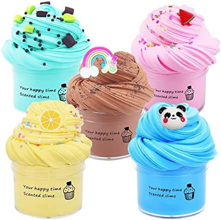 5 Pack Butter Slime Kit,Birthday Gifts for Kids,Party Favor for Girls & Boys,Non Sticky,Super Soft Sludge Toy