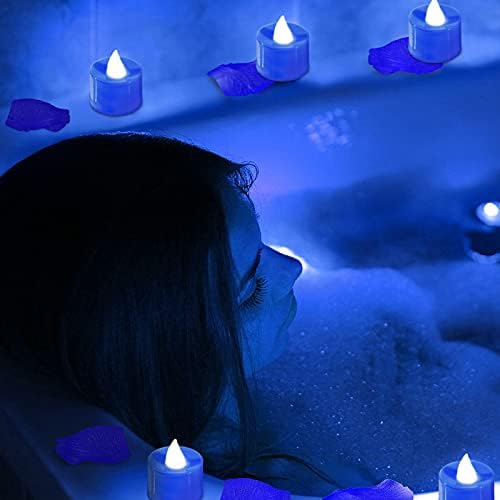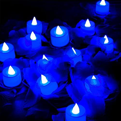 600 Pieces Artificial Rose Petals with 12 Pieces LED Tea Lights Candle Romantic Flickering Candle for Romantic Night Valentine’s Day Anniversary Wedding Honeymoon (Blue Light)