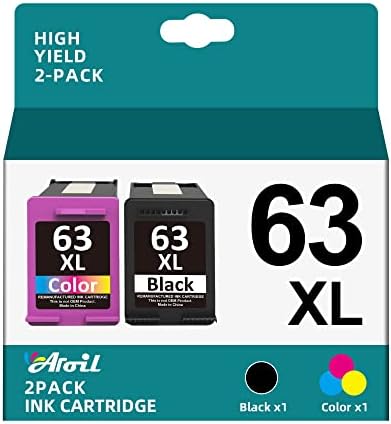 High Page Yield for 63 xl Ink Cartridges: Aroil 63 xl ink for HP 63 ink cartridges combo pack is up to 480 pages for 63xl black ink cartridge, 300 pages for 63xl color ink cartridges.