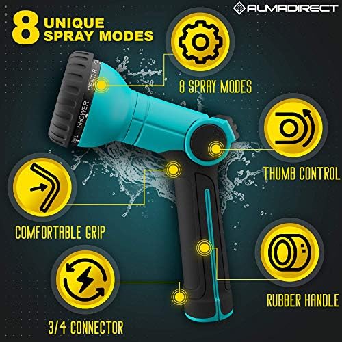 We are proud to introduce the ultimate Almadirect garden hose sprayer nozzle sprayer that will become your garden’s best friend. This is a universal water nozzles for garden hoses with 8 different adjustable body nozzles watering patterns that will fit any USA-based standard garden hose head.