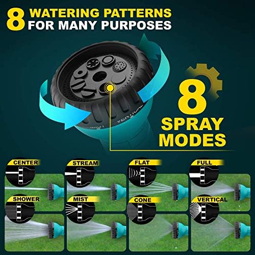 You can always pick an optimal watering pattern according to the task. You can switch the patterns of the sprinkler nozzle for hose on the fly. The patterns include flat, jet, shower, mist, soaker, cone, and center.