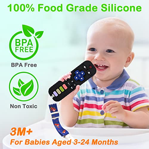 Teething Toy Set: Our baby teether toy contains one TV Remote Shape teether, one cellphone shape chew toys and tow anti-dropping adjustable length pacifier clip. Bonus pacifier clips can be sandwiched on the baby’s clothes to avoid falling, keep it very hygienic.