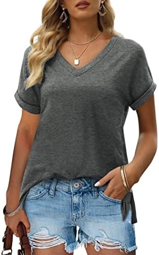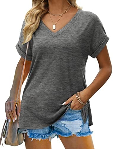 ✦Features: Womens summer tops with casual v neck, rolled sleeves and side split hem, plain basic t shirts perfect for all seasons.