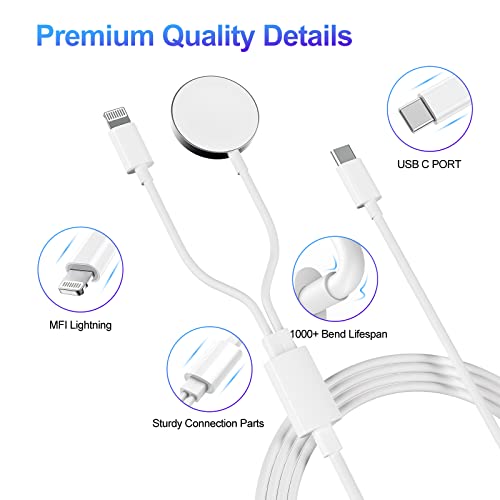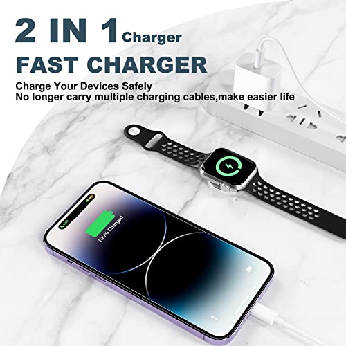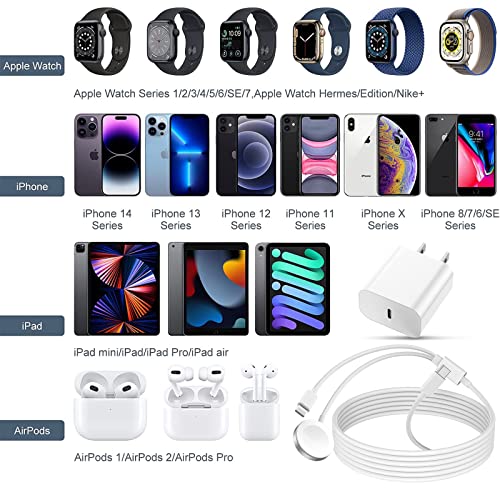 【Safe and Reliable】: This iWatch charging cable is made of high-quality ABS+PC and pure copper wire to avoid shortening its life due to aging and use, it has passed 10000 times of bending tests. USB C fast charger built-in multiple protection system, it can avoid overvoltage, overcharging, overheating and other problems