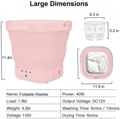 【9L Foldable Washing Machine】The mini washer machine is 11.49 x 11.49 x 11.4 inches when unfolded and can be loaded more items than others, and 11.49 x 11.49 x 3.66 inches when folded. It is easier to move and store in a small space. An excellent gift for one who loves travel, and lives in school, or for families with babies, pets, and sick people