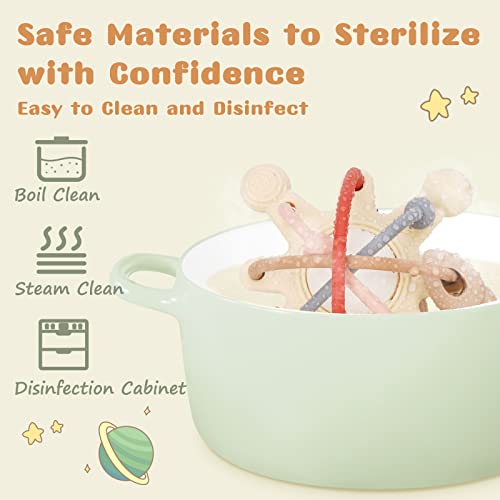 ► [Use with Confidence]: The baby teether is designed with four silicone crossover rings for easy grip and each silicone ring has passed a rigorous stretch test, the teething pacifiers for babies no risk of parts falling off and no choking hazard!