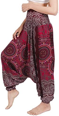 Banjamath Women’s Peacock Print Aladdin Harem Hippie Pants Jumpsuit