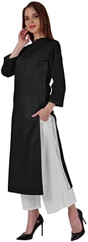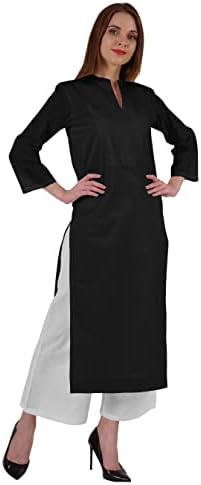 ✤Features: solid pattern, straight Kurti, mandarin collar with V cut design on neck, pintuck pattern on yoke, bracelet-length sleeves, long length, both side slit, straight hem.