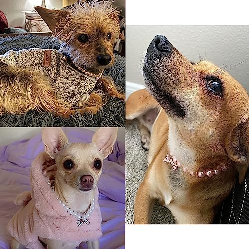 Premium Quality: Elegent artificial pearls, alloy bone charm with shiny rhinestones, high-strength polyester line connection, the necklaces are very durable for small dogs and cats.