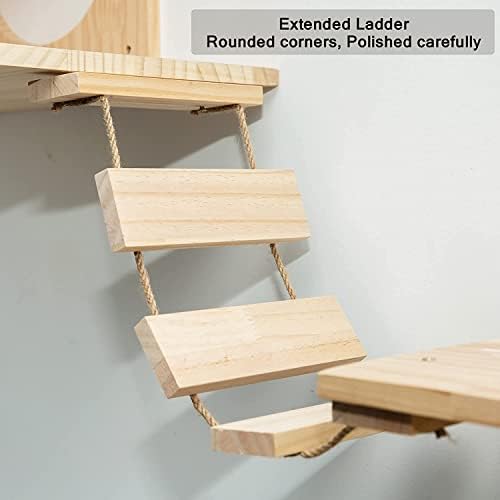 [Luxury Cat Furniture Set] Set of 5pcs, includes 1 x Cat Condos House, 2 Cat Wall Shelves, 1 Sisal Cat Scratching Post, 1 Cat Bridge Ladder. Perfect game structure and rest design to evoke natural instinct of your lovely pet to climb or scratch, offer them an interesting play area and wider vision to make them active and happy.