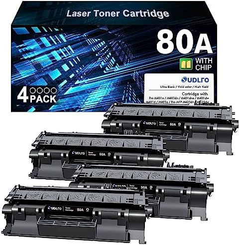 CF280A 80A Toner Cartridge Black Replacement for HP 80A CF280A 80X CF280X to use with Pro 400 M401dn M401dne M401n MFP M425dn M425dw P2055DN Printer (Black, 4-Pack)