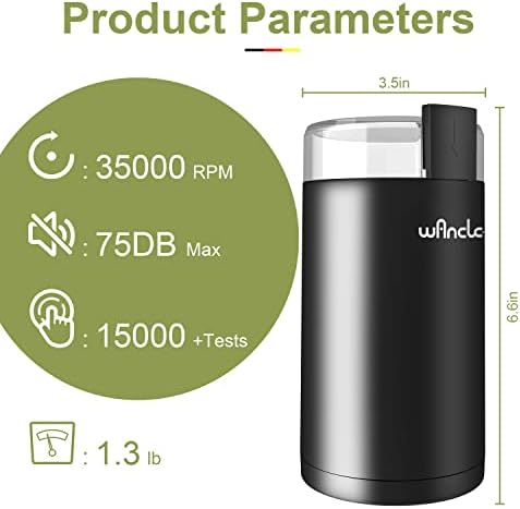 ✅【Save Your Precious Counter Space】Wancle coffee grinder offering a wide range of abilities. Excellent stainless steel blade chops ingredients through rapid spinning, so it not only works well with coffee beans but also works spice, seed, nut, herb.