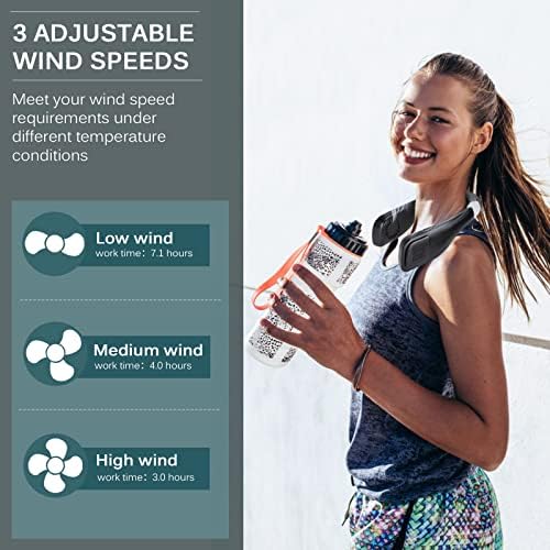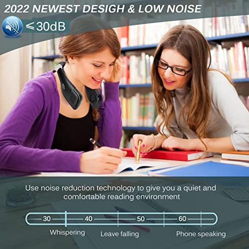 Low Noise Design & 3 Speeds Adjustable — This wearable personal fan uses a high-quality motor to better achieve noise reduction effect, making the noise less than 30 decibels, and it will not feel awkward even when used in a library. The personal neck fan has 3 adjustable air volume settings (weak, natural, strong), and you can switch modes with one button according to your needs and different temperatures, which is very convenient and smart.