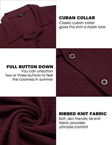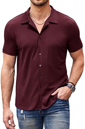 Casual mens button up shirts feature short sleeve, slim fit, full button, classic cuban collar, solid color, ribbed knit design, high stretch. summer shirt, knitted basic tops. Unique design makes you look more fashionable