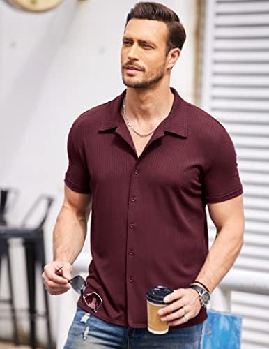 COOFANDY Men’s Short Sleeve Shirts Stretch Rib Knit Button Down Shirt Tops