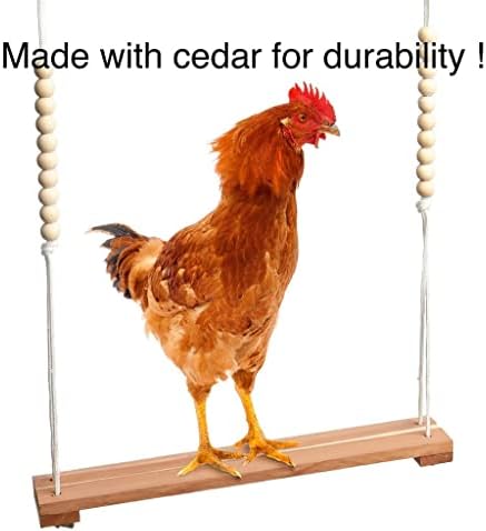 CW&WC Chicken Bird Swing Outdoor: To reduce your pet’s boredom and the destructive nature that it can cause, we have designed these pretty chicken coop toys! Our chicken perches are safe for your bird to relax, stretch their wings, play and peck on so you can be off doing your work without worrying about what your pet is up to! These swing toys for hens and chickens show handsome artisanship in their cedarwood chick stand and in the beaded nylon rope. With a 15.5” x 2.75” perch stand and a rope height of 48” above the ground, this bird swing perch will keep your pet entertained hopping on and off as they please and swinging back and forth while showing the other chickens their tricks! The hens toys have a big surface and height over the ground that allows the chicken more than enough space to stretch its wings to play. Its size makes it ideal to be used as a geese, duck, macaw and a parrot swing, too! Get yourself or a friend these essential chicken supplies and prepare for the fun of raising your chickens or birds. — About Us: CW&WC is a small, family-owned business. We love designing beautiful and thoughtful products that you can use in your daily life. These chicken toys for hens are an effort to do just that. We hope you love our product as much as we do. Thanks for supporting our little business!