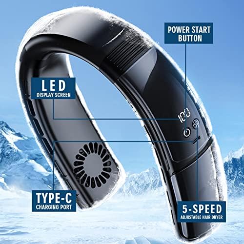 【LED Digital Display Secure & Intelligent Fifth Gears Adjustable】this innovative neck fan caters to your unique preferences equipped with 5 adjustable air volume settings (Super Wind). Powered by a 4000mAh battery, it lasts up to 16 hours on a single charge and takes only 2 hours to fully charge. Perfect for travel, outdoor activities, or any occasion requiring a refreshing breeze.