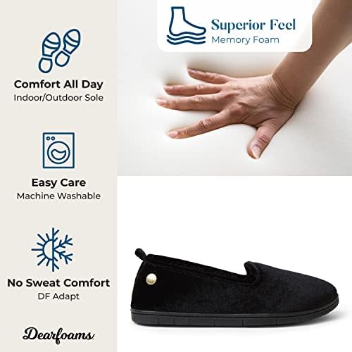 SLIP-ON DESIGN: Dearfoams Women’s Rachel Shiny Velour Closed Back slippers are perfect to slip on when you are looking for some extra comfort for your well-deserving feet. These shiny velour everyday slippers will be your new favorite.