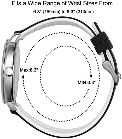 ⌚【TOP COMFORT & DURABILITY】: Two-colors silicone strap is more fashionable, High quality and super soft 100% silicone band. Easy to clean. Imported Japanese quartz movement make it accuracy rate less than 1 second per day, it will always tell you accurate time. High hardness glass mirror. Wear-resistant and scratch-resistant. Water resistant up to 30M(99ft)