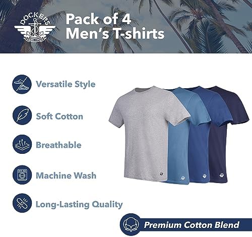 Dockers Mens Undershirts 4 Pack Mens Lightweight T Shirt Crew Neck Undershirt, 100% Cotton