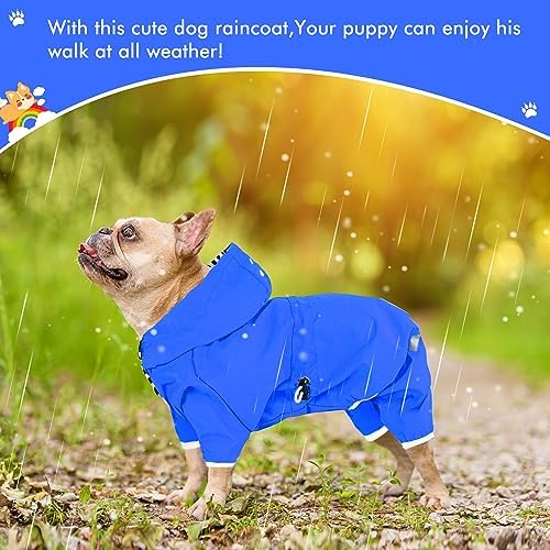 Reflective design and strap holes: This puppy’s raincoat is designed with reflective strips on both sides. High visibility will ensure your puppy’s safety in rainy days, nights and low-visibility environments. In order to prevent the safety of puppies in the rain, we also designed a leash hole on the back of this puppy raincoat, easy to connect the leash.