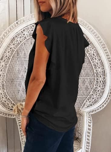 Features: Womens Tank Tops, Sexy V Neck Sleeveless Tops, Ruffle Sleeves Shirts, Cap Sleeve Tops, Solid Color, Loose Fit style, Business dressy work tops for women.