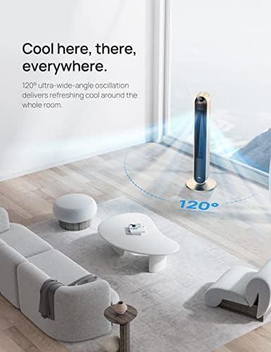 Dreo Smart Tower Fan Voice Control, 120° Oscillating Fan Works with Alexa/Google/App/Remote, 42 Inch, 25dB Quiet DC Bladeless Fan for Bedroom,12 Speeds, Floor Fan for Home, Office, Pilot Max S