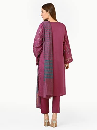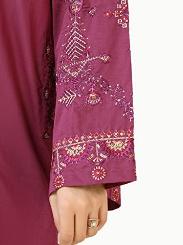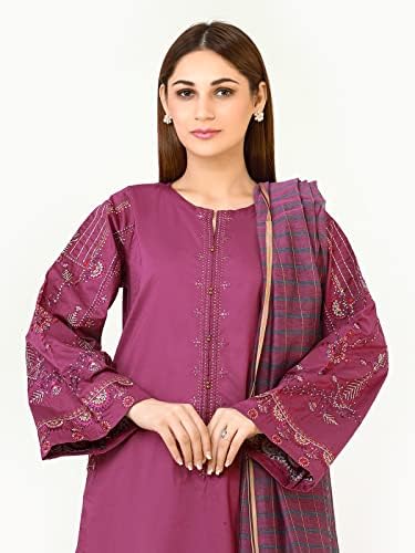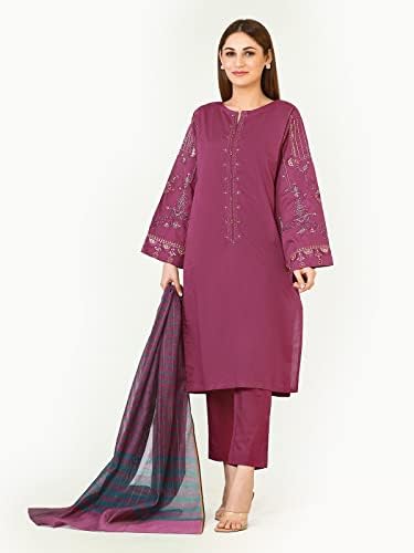 This cozy Women’s stitched ethnic dress is made of embroidered fabric and is suitable for wearing on a variety of casual occasions. This incredibly comfortable and stylish stitched Kameez Shalwar Suit is made with the sewing of decorations by artisans to create distinctive designs. Embroidery is used to garnish the full sleeves Shirt.