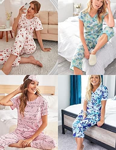 【Exquisite Design】Two-piece printed pajama set comes with casual pajama top and matching capri pants. Soft pajama shirt features with round collar, short sleeves, and cute printed. Capri sleep pants featured relaxed fit, elastic drawstring waist ensures that you can adjustable waistline depend your need
