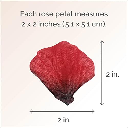 These 2200 Artificial Rose Petals by Elements are delicately shaped and shaded to add a touch of romantic elegance to any room. Made from poly silk, each petal features a soft, velvety sheen and a beautiful two-tone red shade for a lifelike look and feel. Write messages with petals, create trails or heart shapes, scatter on tables or aisle runners, and so much more. These versatile petals are also great for creating unique craft projects, or homemade decorations. Faux rose petals are the perfect decoration for Valentine’s Day, weddings, parties, anniversaries, and more. Petals ship compressed; rub between thumb and forefinger to separate and adjust petals to your desired look. Measures 2 x 2 inches each.