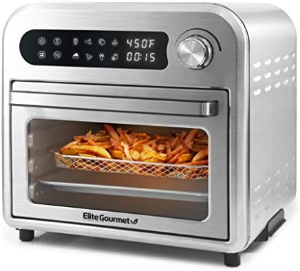 Elite Gourmet EAF1010D Programmable 10L Air Fryer Convection Countertop Oven, 8 Menu Settings, Temperature + Timer Controls, Bake, Toast, Broil, Air Fry, 1500W with Recipes, Steel Exterior