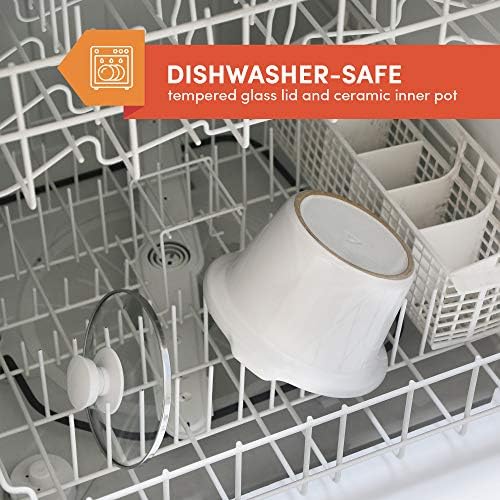 FAST, EASY CLEAN-UP with our dishwasher-safe clear tempered glass lid and removable oval stoneware pot. The exterior heating base can be wiped clean with a damp cloth to maintain its pristine appearance.