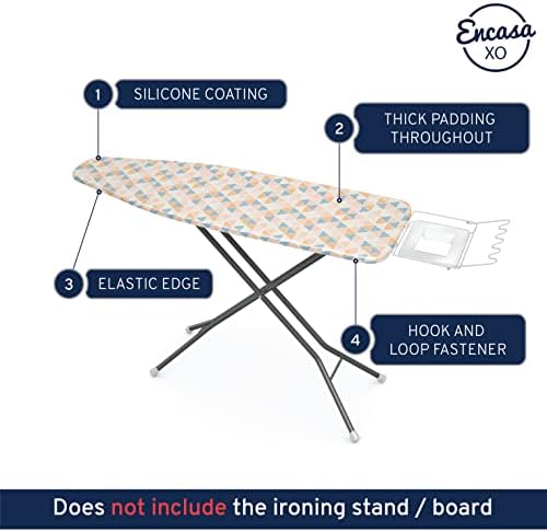 Encasa Homes Replacement Ironing Board Cover with Extra Thick Pad, Made in India, Standard (Fits Wide Boards 18 x 49 inch) Elasticated, Scorch Resistant, Durable – Blocks