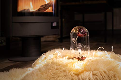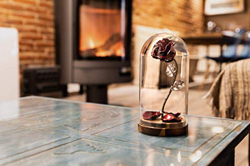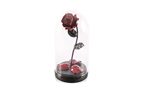 Wrought iron rose, handforged by a master craftsman in authentic blacksmith shop, you will not find two identical roses. An original gift for your loved one. Beauty and the Beast wrought iron enchanted rose with personalized engraving, fallen petals in a glass dome on a wooden base. A unique gift for any special moment or celebration, especially for wedding anniversaries, Valentine’s Day, Mother’s Day, etc…