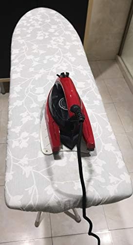 This Extra Wide Ironing Board Cover With Pad fits extra wide ironing boards. Size: 18’’x 48’’ Anti-scorch & Anti-stain protective coating.Deluxe extra thick foam plus extra thick fiber pad.Fitted nose for fast and easy application.Secure lock straps keep cover in place.Fitted skirt and seam prevent cover from shifting. cover made of 100% cotton. Pad made of :one layer of 100% polyurethane foam,one layer of 100% polyester fiber. cover made of 100% cotton. Pad made of :one layer of 100% polyurethane foam,one layer of 100% polyester fiber.