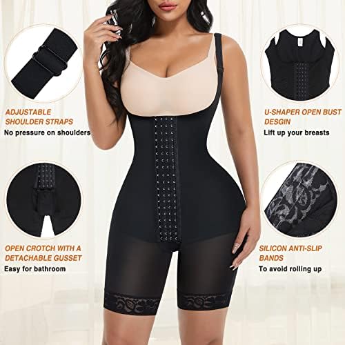OPEN BUST & TUMMY CONTROL SHAPERWEAR: The U-shape open bust design can support your breasts, ruduce the armpit bulges and effectively firm control the back flabby fat very well, which to achieve your body with no lumps or bumps. We have the butt lifting and butt enhancement design as well, special stretchy fabric and drape desigh can make your waist and hip shape with defined enhancement effect and abdominal reinforcement with high compression enabling firm control .