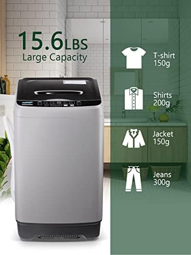 【Large Capacity for Family】The inner tub of this portable washer could load 15.6 lbs of clothes at one time, which is suitable for family of 3-4 members. The reference weight for all types of clothes would also be highlighted in the description and pictures. This washing machine would help you save more energy and efforts.