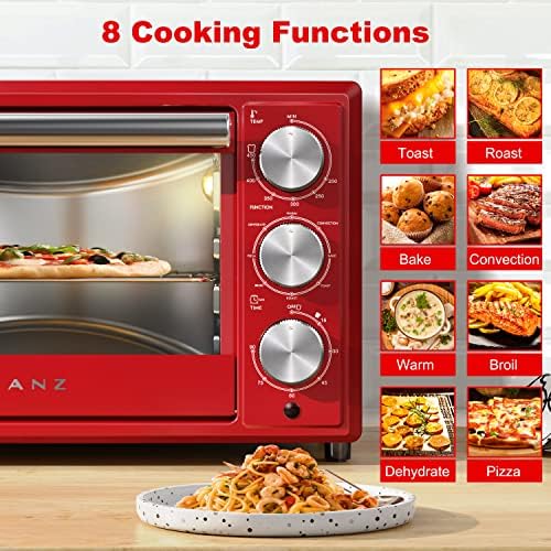 This Galanz 0.9 Cu.Ft, 1500 watts retro toaster oven with its Hot Rot Red look can complement your kitchen with different styles. This thoughtful toast oven offers 8 cooking functions, including Bake, Toast, Roast, Broil, Pizza, Dehydrate, Keep Warm, Convection. It is also convenient for users to set the time and temperature. Besides, glass door provides better visibility while cooking without opening the door.