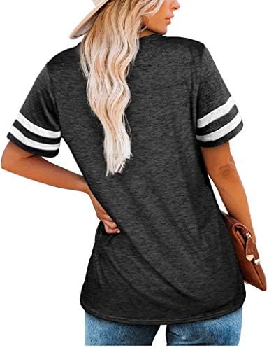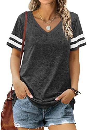 Geifa Womens T Shirts V Neck Striped Short Sleeve Summer Tops Loose Fit