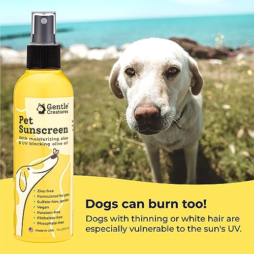 Gentle Creatures pet sunscreen is custom formulated with chemical and natural sunscreens that provide SPF against the sun’s UV rays. The formula also includes moisturizers and conditioners to keep your dog or cat’s coat beautiful while protecting against the sun. Apply 20 minutes before sun exposure for the best results. It’s best to avoid long exposure to the sun, but if you plan to spend more than an hour in the sun with your pet, make sure to reapply regularly.