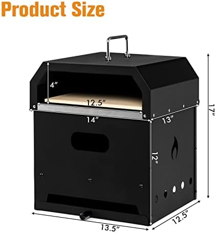 【Portable Design & Wide Application】: Equipped with a top handle and built-in side handles, the lightweight grill oven and fire pit set allows for effortless movement and carriage. It will add a lot of fun to camping, gatherings and BBQ. You can cook delicious pizza, roast chicken, fish, vegetables, etc. with this multipurpose pizza oven.