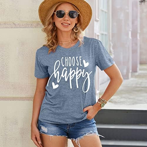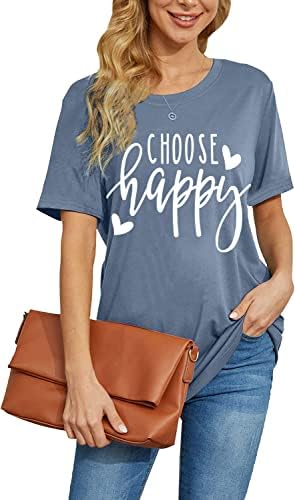 【FEATURES】Women graphic tees, choose happy letter print shirts, simple sayings cute love heart graphic print spreading an inspirational message of love and happiness. Casual short sleeves, classical round neck, be happy shirts are fashionable and elegant.