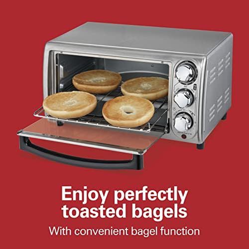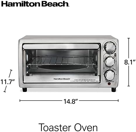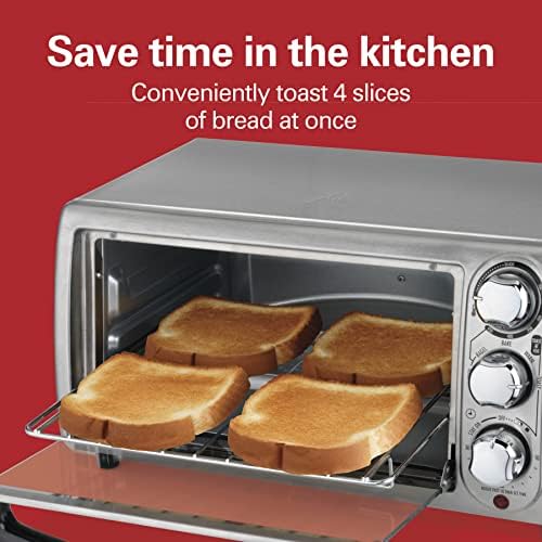 Horno tostador de acero inoxidable con capacidad para 4 rebanadas de pan o una pizza de 23 cm. Cuenta con funciones de tostado, horneado y asado, además de temporizador con apagado automático. Hornea y calienta alimentos ahorrando energía y en menor tiempo, es ideal para calentar alimentos congelados como nuggets de pollo y recalentar pan, pizzas, galletas y mucho más. Es rendidor y amplio por dentro, pero compacto y práctico por fuera, se adapta perfectamente hasta en las cocinas más pequeñas. Sus diales son fáciles de usar lo que permiten tener un control completo de la función y la temperatura.