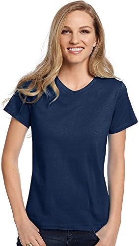 5.2 oz., 100% ComfortSoft cotton; Light Steel 90% ComfortSoft cotton/10% polyester; tailored specifically for women; double-needle stitching throughout ; coverseamed neck with back neck tape; narrow 1×1 rib V-neck collar; tag-free neck label