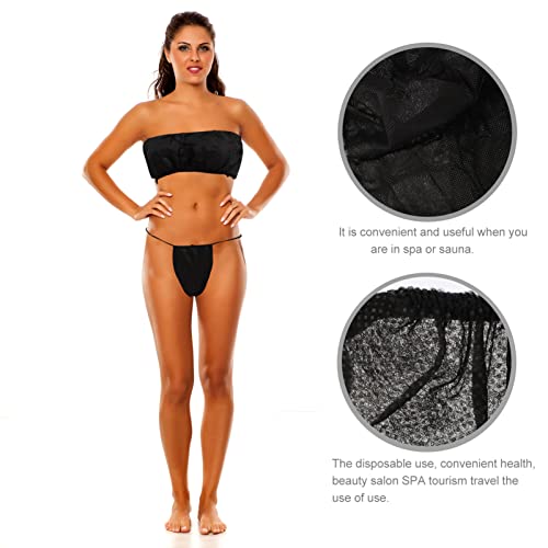 Healeved Black Tops for Women Disposable Bras and Panties 20 Sets Women Spa Bikini Thong Panties Sunless Spray Tan Top Spray Tanning Brassieres Spa Salon Top Garment Black