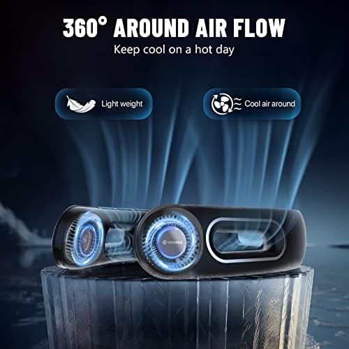 【Designed for Comfort & Safety】The bladeless neck fan weighs only 9 oz and features a 3 large-hole design on the device to put less strain on the neck, delivering unmatched comfort and cool breeze. Made of skin-friendly ABS material, the air pinch-proof design adds extra comfort and ensures the user’s safety for long-haired people, kids and the elderly. The cooling neck fan is designed to provide hands-free operation, keeping you cool while engaging in various activities.